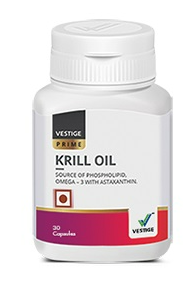 Antarctic Krill, which is the source of Krill Oil, is comprised of three major components – Omega-3 fatty acids, primarily eicosapentaenoic acid (EPA) and docosahexaenoic acid (DHA) attached to phospholipids and astaxanthin. Most of the Omega-3 fatty acids in Krill Oil are attached to phospholipids, making them more bioavailable to the body, and allowing Omega-3 to be easily absorbed by target organs such as the heart, brain, and liver, where they exert their beneficial effects. VESTIGE PRIME Krill Oil is extracted by a proprietary technology, called Multi Stage Oil (MSO®) extraction process that assures high-quality oil which has superior stability, quality, and organoleptic properties.
